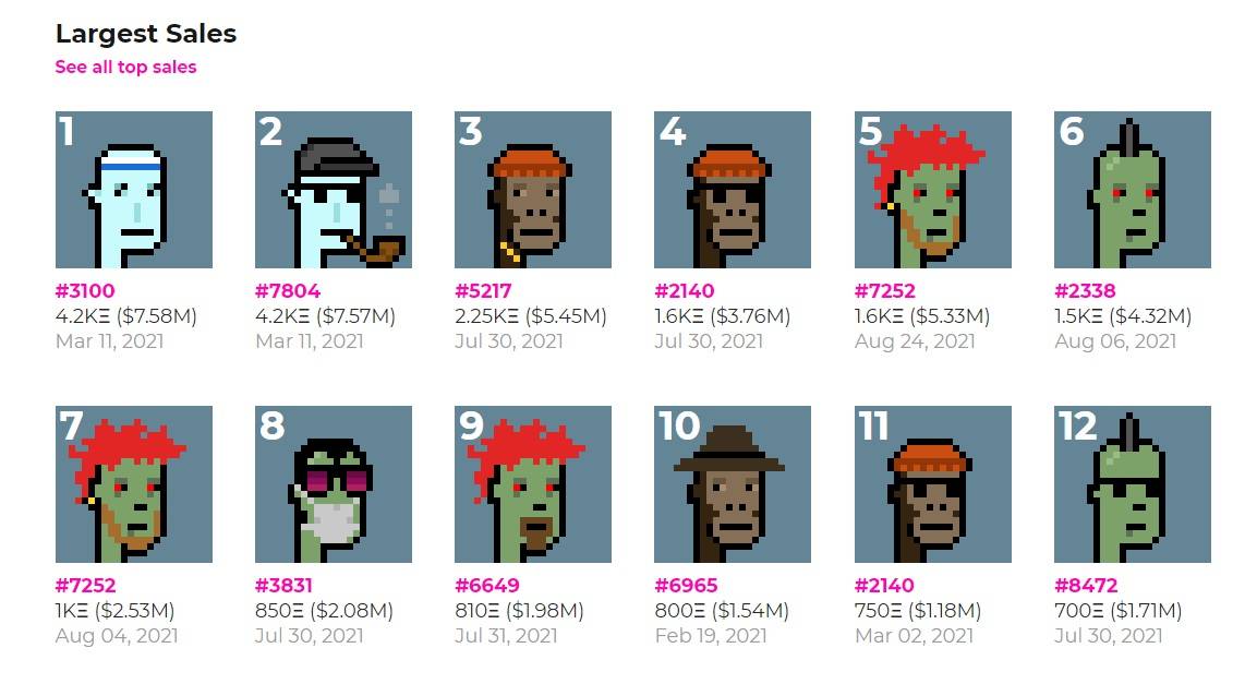 The most expensive sale of a CryptoPunk was sold in June of this year for 117 million. Just a few days earlier on August 28 CryptoPunks crossed the 1 billion mark in all-time sales. It is the second NFT project to achieve the feat.
