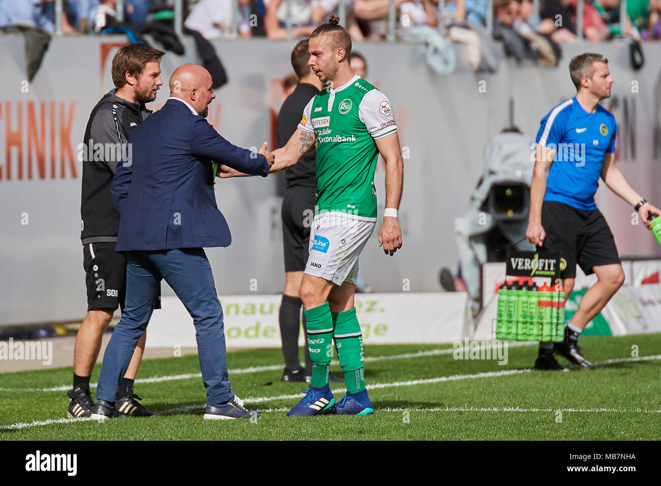 St Gallen Switzerland 8th April 2018 Peter Tschernegg Takes Instructions From Fc St Gallen Coach Giorgio Contini During The Raiffeisen Super League Match Fc St Gallen 1879 Vs Bsc Young Boys Credit